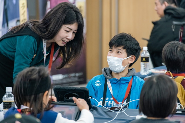 今回はプロ雀士の麻宮あかね、林輝幸、松田麻矢、渡辺太が講師となり、麻雀の基本からプロの視点を交えた対局指導・解説まで行い、プロのアドバイスのもと大会形式の対局に臨んだ子どもたちは、一人ひとり真剣な表情で対局に没頭した。
