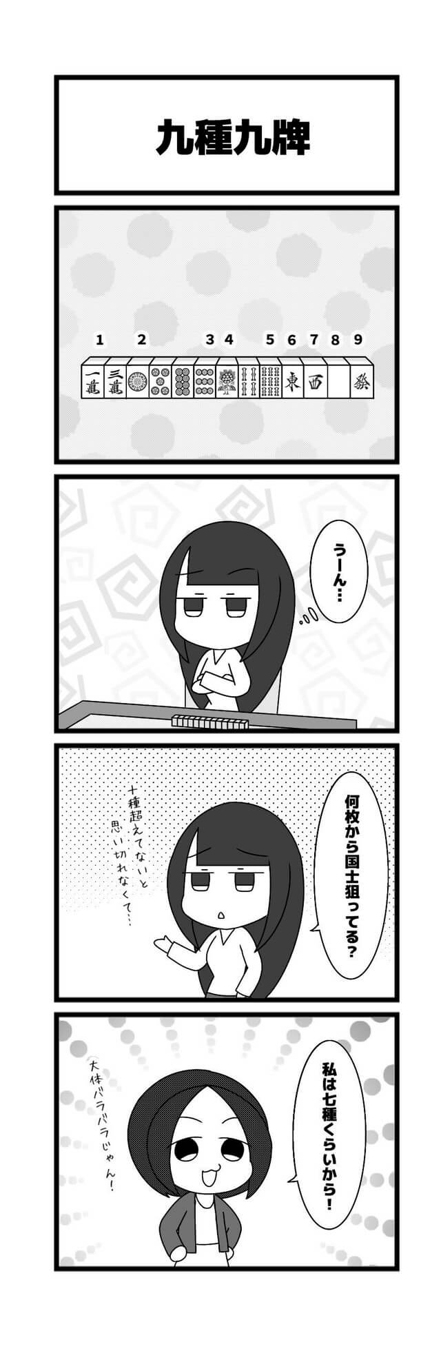 607本場「九種九牌」高橋 侑希2025年12月16日たかはしさんの『りーち、ですっ♪』~漫画版~ たかはしさんの『りーち、ですっ♪』~漫画版~とは 「たかはしさんの『りーち、ですっ♪』~漫画版~」は、高橋侑希プロ(@04Yvk1)による4コマ漫画です! 現役プロによる麻雀あるあるなどを漫画でおとどけします! ご意見・ご感想とネタがありましたら、お問い合わせフォームからどうぞ!! どこから狙ってもいいじゃない!役満だもの!(まろちょふ) 他の漫画も読む! 2025年12月11日606本場「束の間の安堵」この記事のライター高橋 侑希日本プロ麻雀連盟中部本部29期生 中部プロリーグ Bリーグ所属 段位は二段岐阜県出身で現在は大阪在住麻雀ブル梅田店常勤「秋雨」という名前のうさぎを飼っている高橋侑希『りーち、ですっ♪』ライターの最新投稿2025年12月11日たかはしさんの『りーち、ですっ♪』~漫画版~606本場「束の間の安堵」2025年12月9日たかはしさんの『りーち、ですっ♪』~漫画版~605本場「記念写真」2025年12月4日たかはしさんの『りーち、ですっ♪』~漫画版~604本場「記念の牌」高橋 侑希の記事一覧