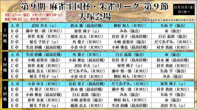 第9節は一部卓が配信、1回戦A卓は非常に豪華な卓組となり注目を集めた。
