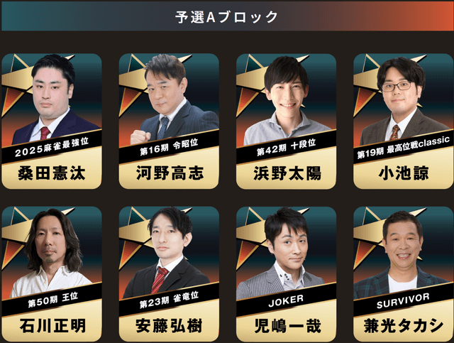 各プロ団体のタイトルホルダーやMリーガー、凄腕スター雀士の総勢32名が出場する。