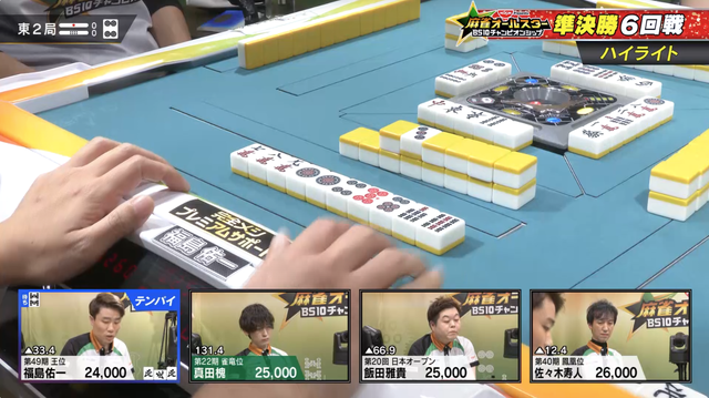 東2局、東3局で福島が3900を決めて一歩リードとなる。