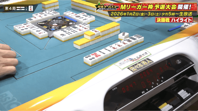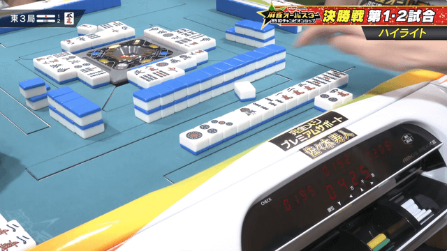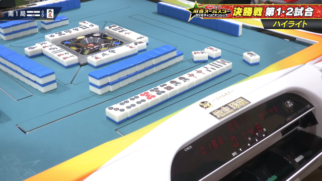 南1局は本田と真田の2人リーチ、親の本田が7700の加点を決めてトップに向けて大きく前進。