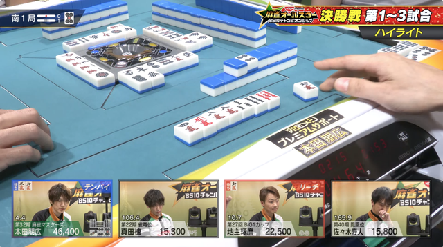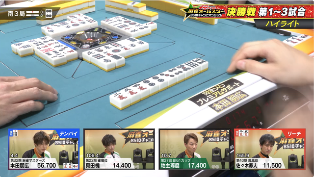 南3局は本田が寿人のリーチをかわしてアガリをもぎ取る。寿人を4着に沈めた上でのトップをもぎ取った。