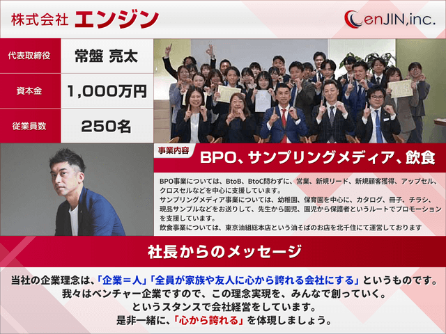 我々はベンチャー企業ですので、この理念実現を、みんなで創っていく。というスタンスで会社経営をしています。是非一緒に、「心から誇れる」を体現しましょう」