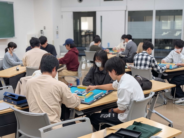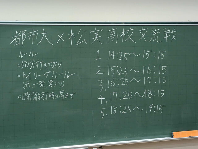 現在その対象校となっている松実高等学園・健康麻雀部と、東京都市大学・競技麻雀部との交流試合が行われた。