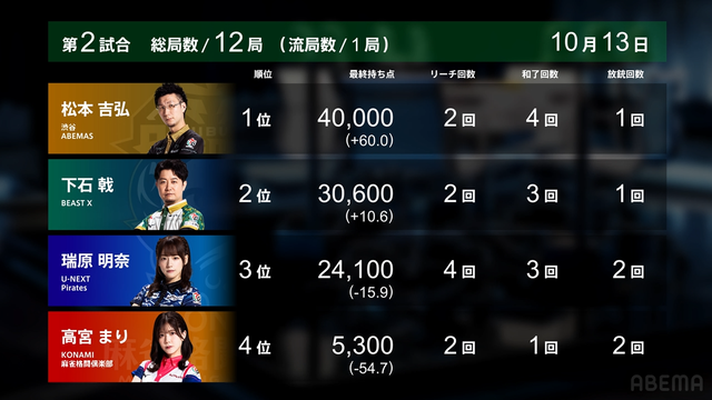 ▷ https://t.co/8fk1qLbJ5c#Mリーグ pic.twitter.com/14Obqo00Ys