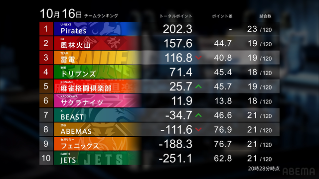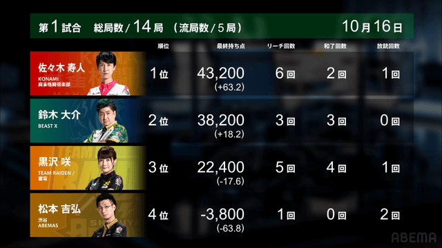 ▷ https://t.co/SAvt6Y84gT#Mリーグ pic.twitter.com/24wWw2mQFz
