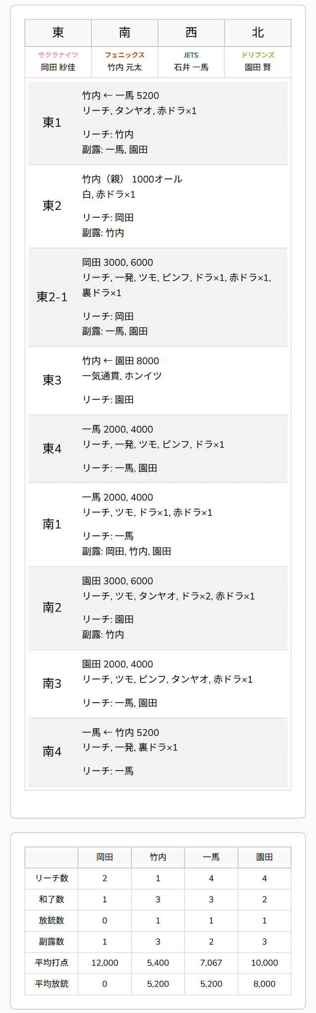 をツモアガリ。跳満のアガリで園田はラス目から点数を取り戻す。