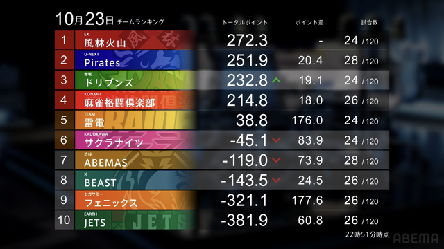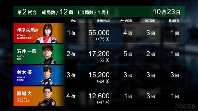 ▷ https://t.co/9zOddvrXPj#Mリーグ pic.twitter.com/NvH8N2AXzw