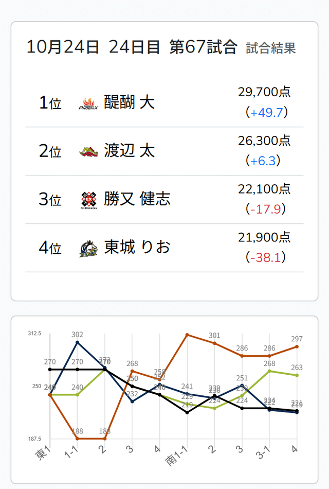 南4局、トップ目の醍醐が仕掛けてタンヤオに向かう。親の太はフリテンの![]()