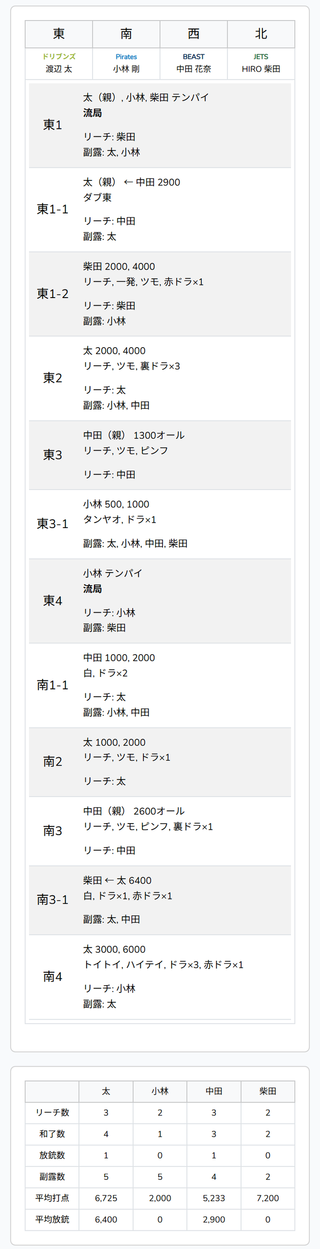 待ちを仲林からロンアガリ。12000は12600となった。柴田の点棒は5万点を超える。