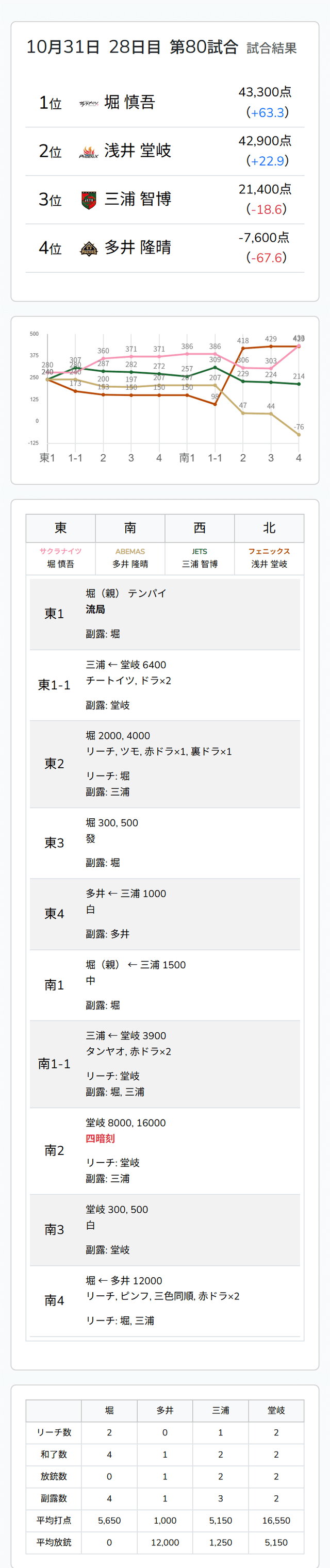 Mリーグ【10/31 Mリーグ2025-26 第2試合結果】麻雀chは鋭いアガリを重ねた鈴木優がトップでPiratesが同日連勝!LIVEchは浅井堂岐が四暗刻を決めるも堀慎吾がオーラスに捲って逆転トップ!