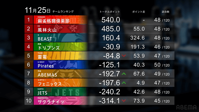 — Mリーグ/プロ麻雀リーグ (@m_league_) November 25, 2025