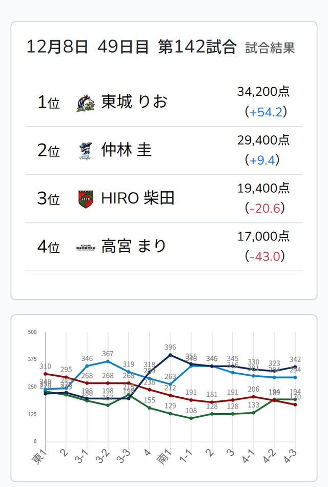 4着目でこの局を迎えた東城選手