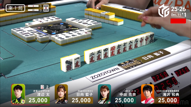 をロン、裏ドラも乗せた12000のアガリで幸先良い滑り出しとなる。