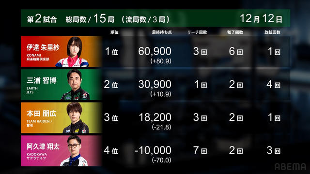 ▷ https://t.co/g2Iw3hzBXq#Mリーグ pic.twitter.com/yflANk7S2E