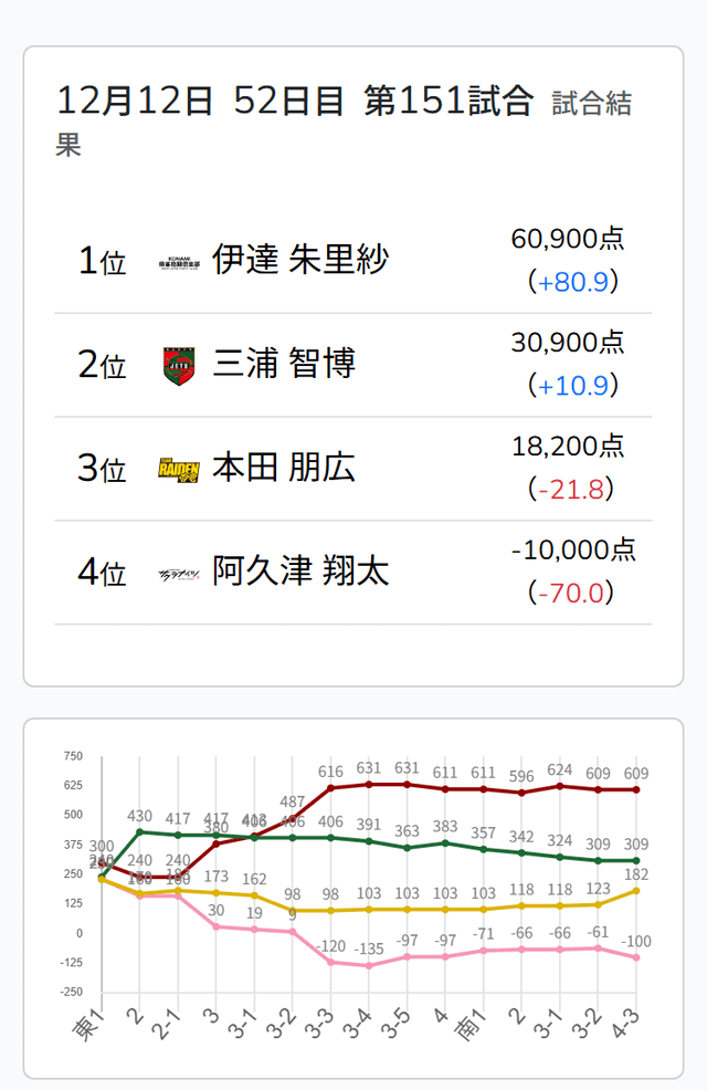 — Mリーグ(プロ麻雀リーグ)実況 (@m_league_jikkyo) December 12, 2025