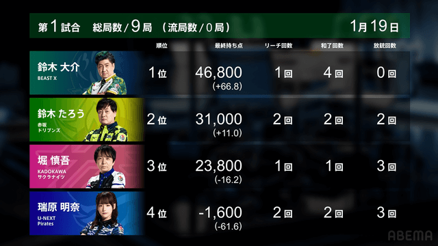 — Mリーグ/プロ麻雀リーグ (@m_league_) January 19, 2026