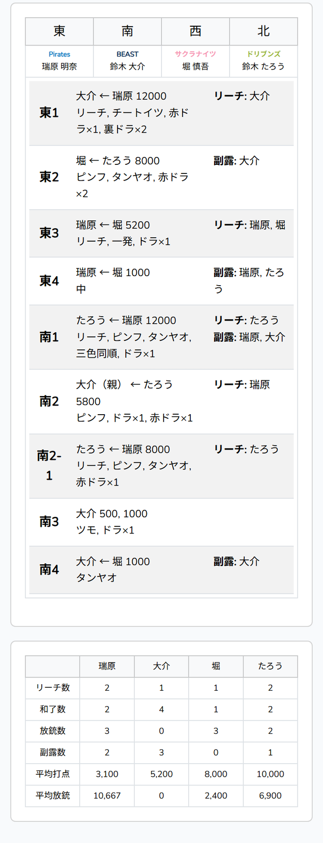 が放たれると裏ドラが2枚乗って大介の跳満のアガリ。