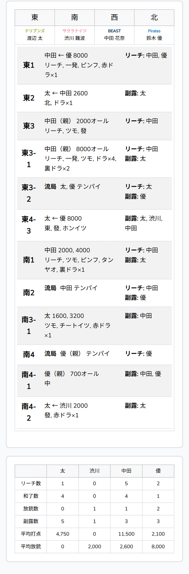 東3局1本場 #中田花奈 選手の親倍満ツモ!