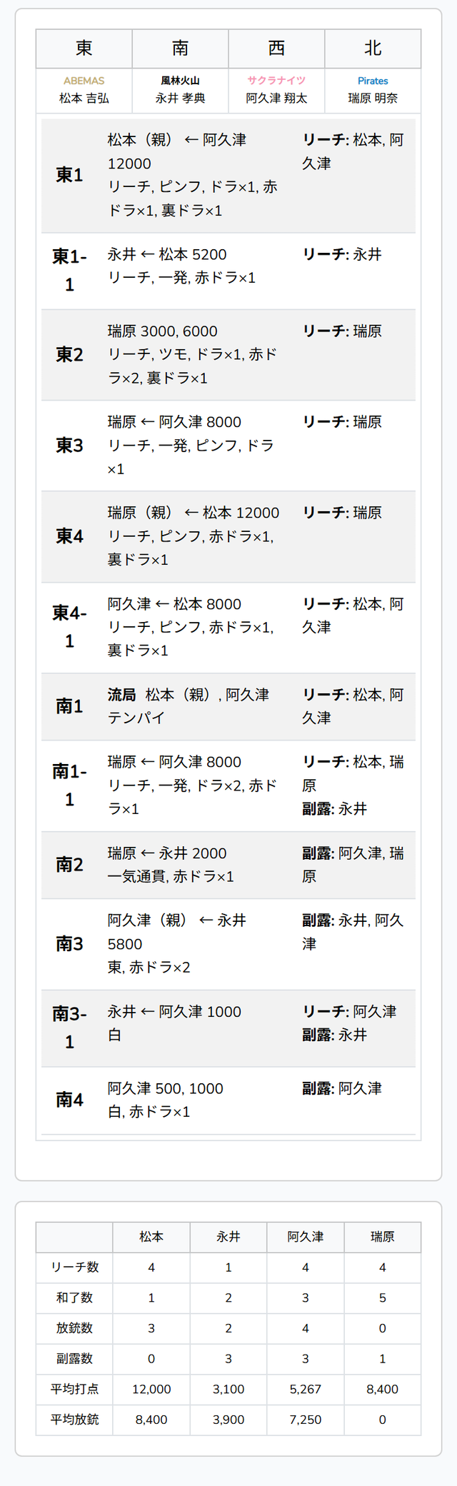 東2局 #瑞原明奈 選手の跳満ツモ!