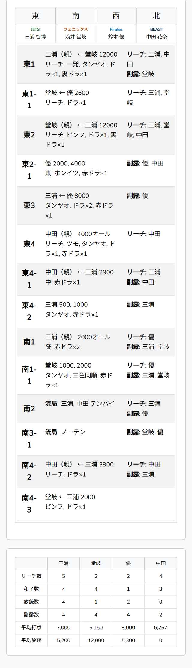 を掴んでしまう。中田が3900のアガリで連荘する。