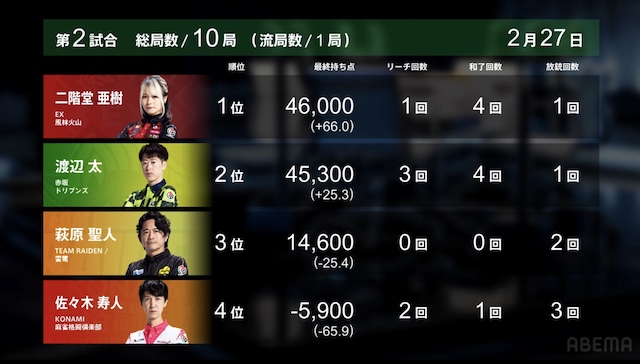 ▷ https://t.co/CzP0R8hUQQ#Mリーグ pic.twitter.com/QQte02nqnA