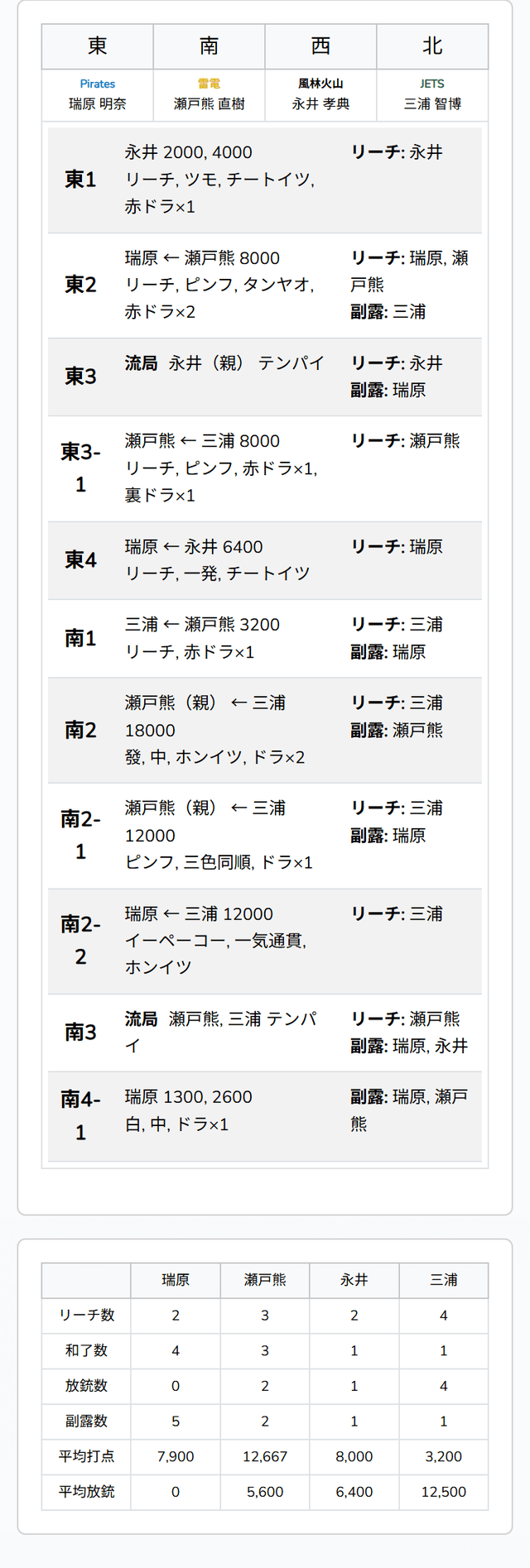 待ちに命運を預けた。山に残っている枚数は、瑞原3対瀬戸熊1。その枚数通り、瑞原がツモアガリで逆転トップを獲得し、熱戦に終止符を打った。