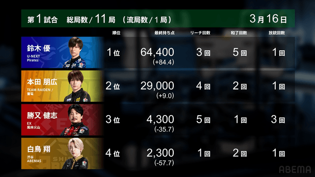 — Mリーグ/プロ麻雀リーグ (@m_league_) March 16, 2026