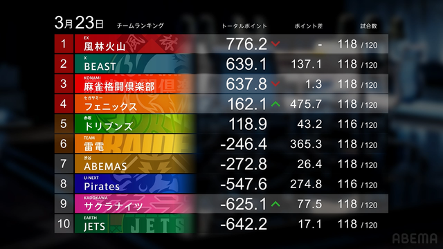 第2試合終了時点のトータルランキング ©ABEMA