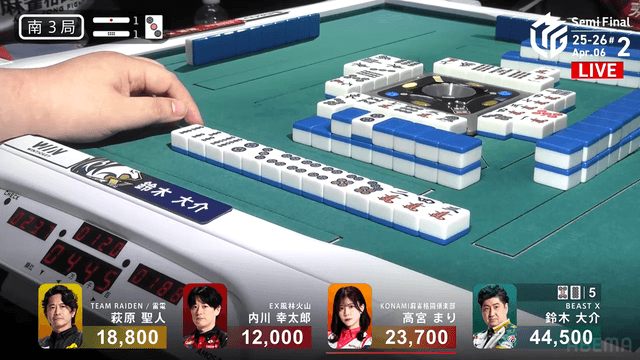 南3局1本場 #鈴木大介 選手の跳満のアガリ!