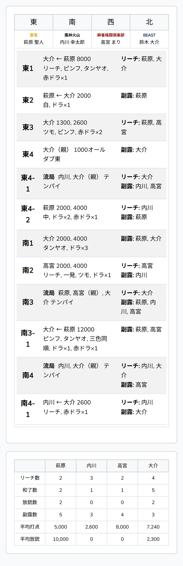を放つと大介の跳満のアガリに。この試合の決定打となる大きなアガリとなった。