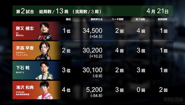 — Mリーグ/プロ麻雀リーグ (@m_league_) April 21, 2026