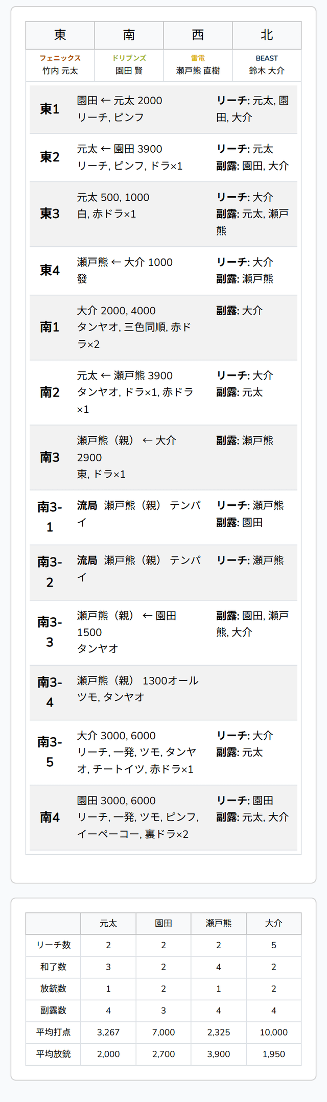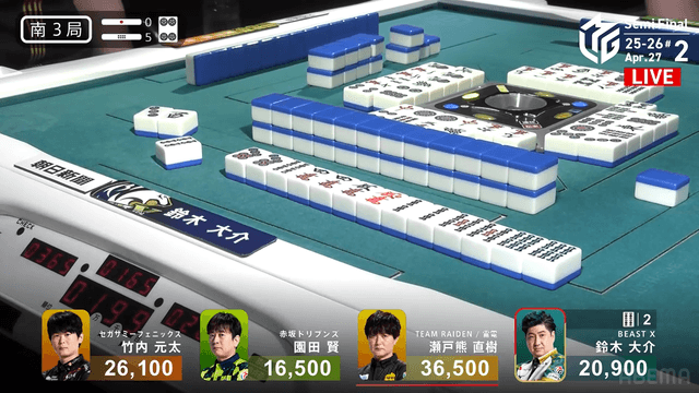 瀬戸熊選手が連荘を重ね抜け出す展開!