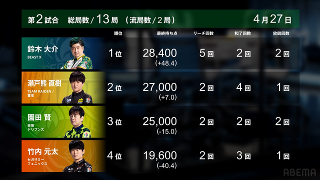 — Mリーグ/プロ麻雀リーグ (@m_league_) April 27, 2026