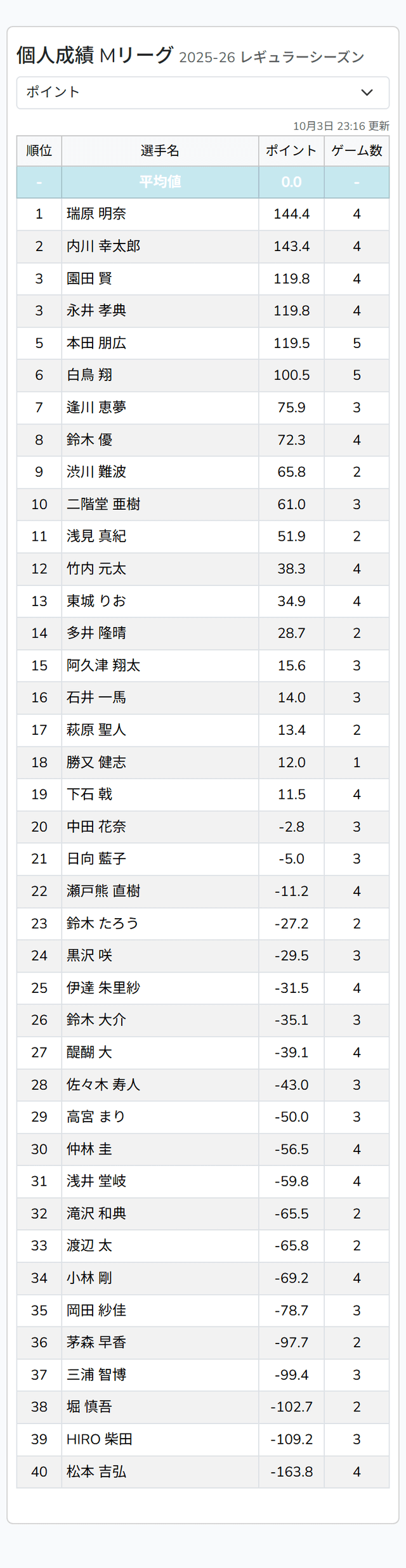 — Mリーグ/プロ麻雀リーグ (@m_league_) October 3, 2025
