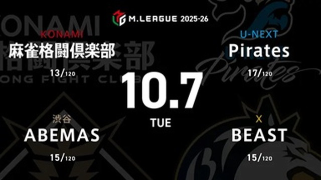 KONAMI麻雀格闘倶楽部 vs 渋谷ABEMAS vs BEAST X vs U-NEXT Pirates
