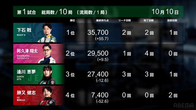 ▷ https://t.co/O0njEenv8n#Mリーグ pic.twitter.com/cdvImreJL2