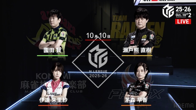 麻雀プロリーグ「大和証券Mリーグ2025-26」レギュラーシーズン16日目が10月10日(金)に開催された。