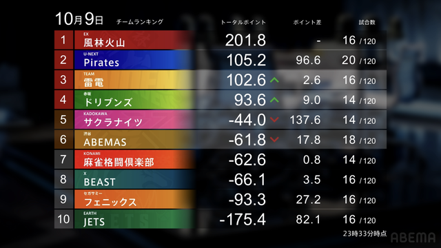 赤坂ドリブンズ vs KONAMI麻雀格闘倶楽部 vs セガサミーフェニックス vs チーム雷電
