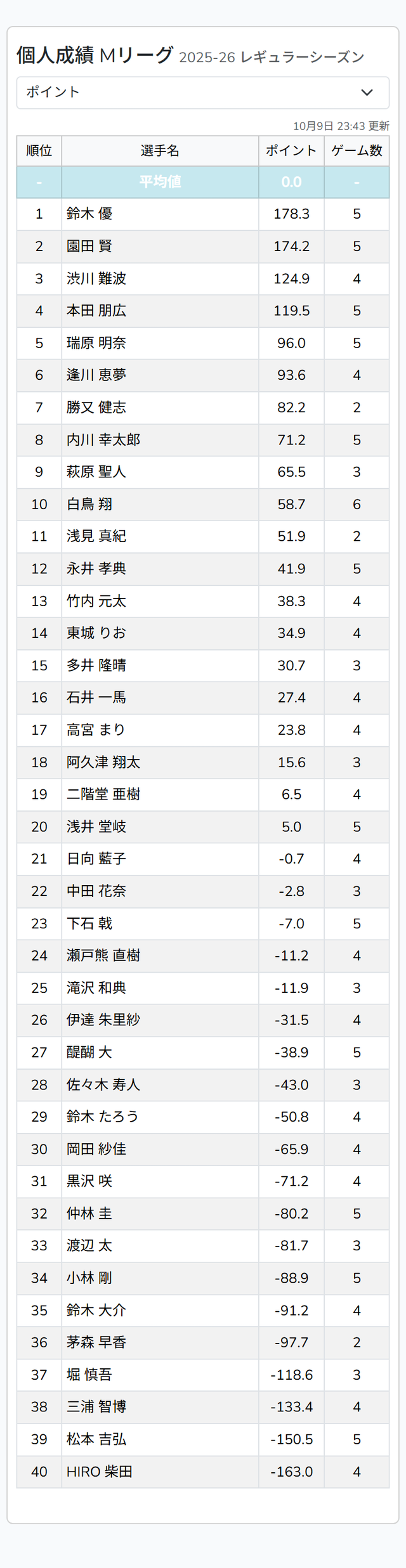 — Mリーグ/プロ麻雀リーグ (@m_league_) October 10, 2025
