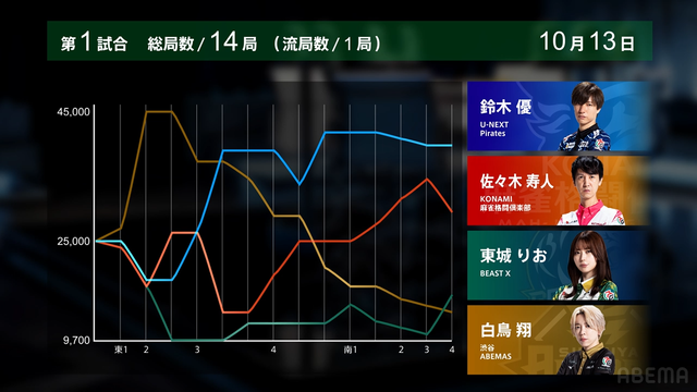 麻雀プロリーグ「大和証券Mリーグ2025-26」レギュラーシーズン17日目が10月13日(月)に開催された。