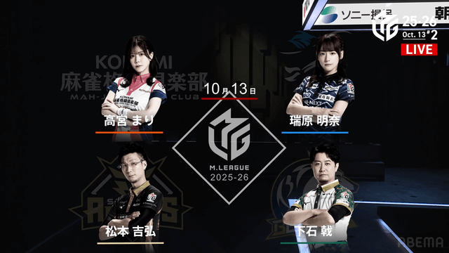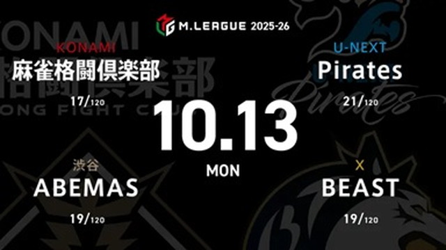 麻雀プロリーグ「大和証券Mリーグ2025-26」レギュラーシーズン17日目が10月13日(月)に開催された。