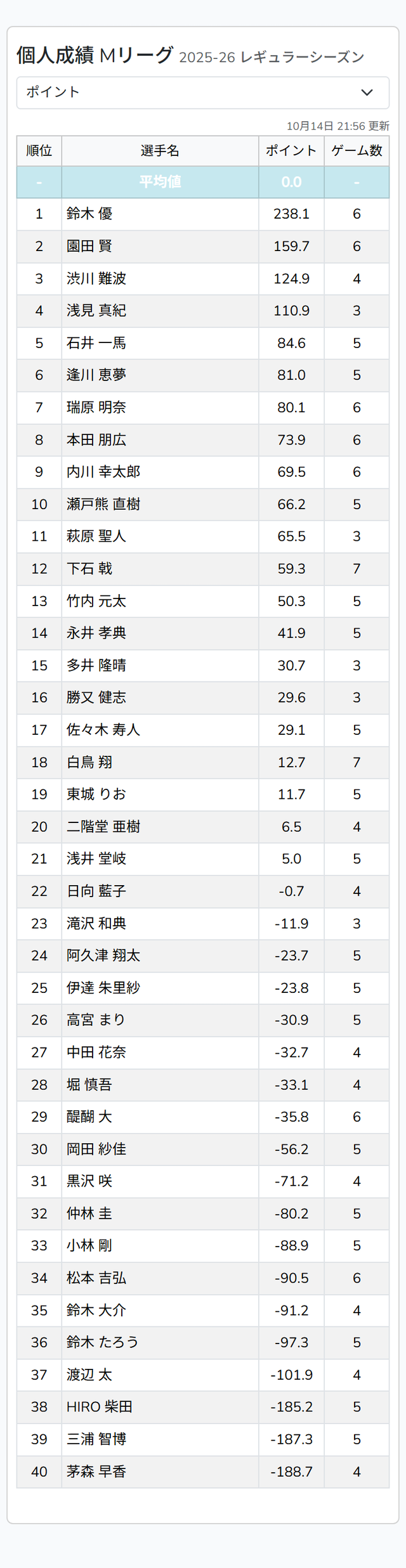 — Mリーグ/プロ麻雀リーグ (@m_league_) October 14, 2025