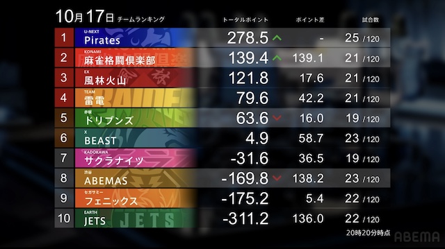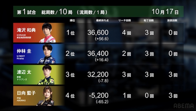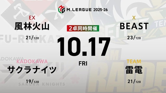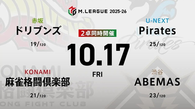 麻雀プロリーグ「大和証券Mリーグ2025-26」レギュラーシーズン20日目が10月17日(金)に開催された。