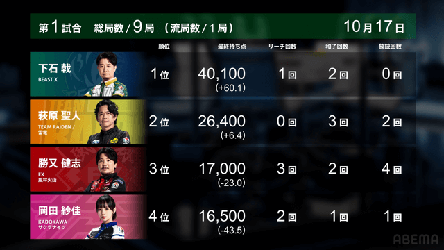 — Mリーグ/プロ麻雀リーグ (@m_league_) October 17, 2025