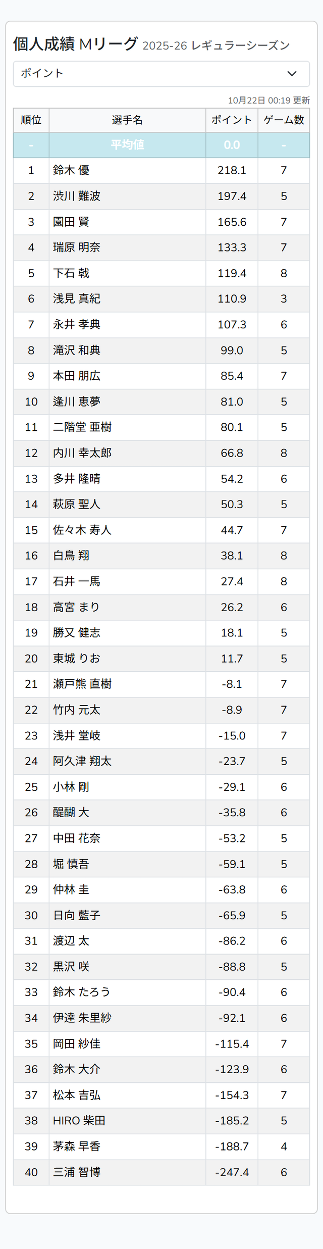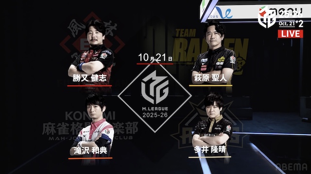 麻雀プロリーグ「大和証券Mリーグ2025-26」レギュラーシーズン22日目が10月21日(火)に開催された。