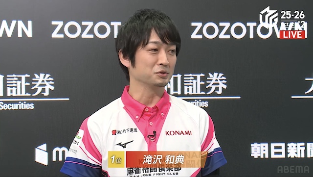 1位 滝沢(麻雀格闘倶楽部)+54.3