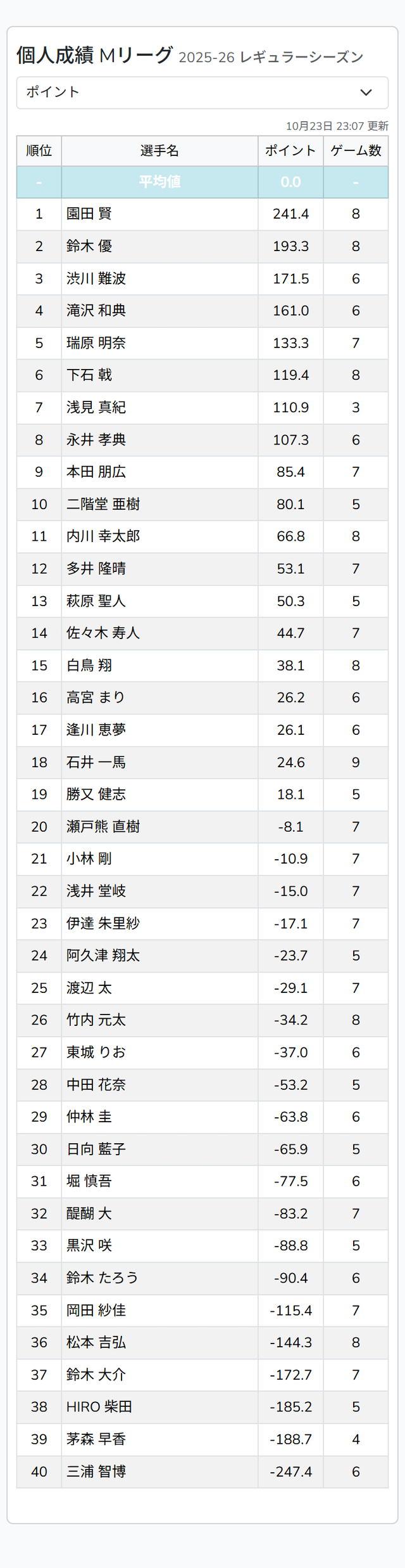 ▷ https://t.co/9zOddvrXPj#Mリーグ pic.twitter.com/NvH8N2AXzw