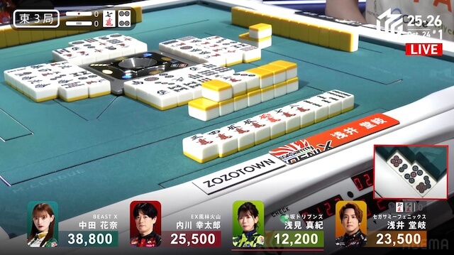 浅見選手が??待ちの先制リーチに出るも